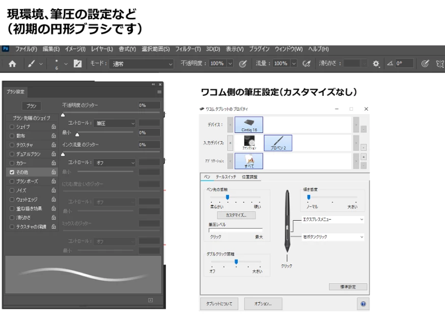 ブラシの筆圧設定に関しての質問です。