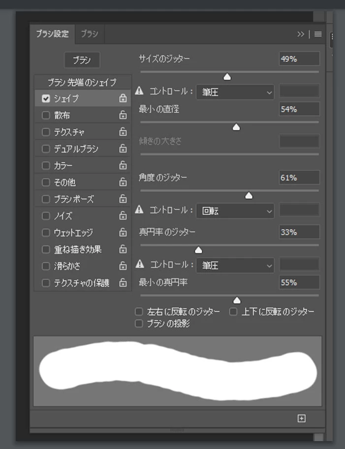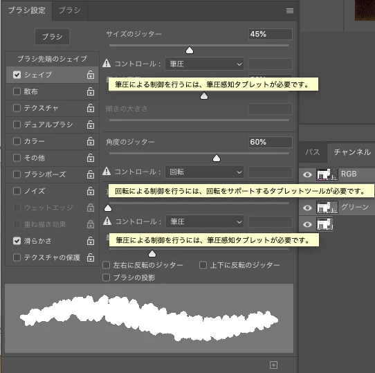 ブラシツール シェイプが使えない状態。