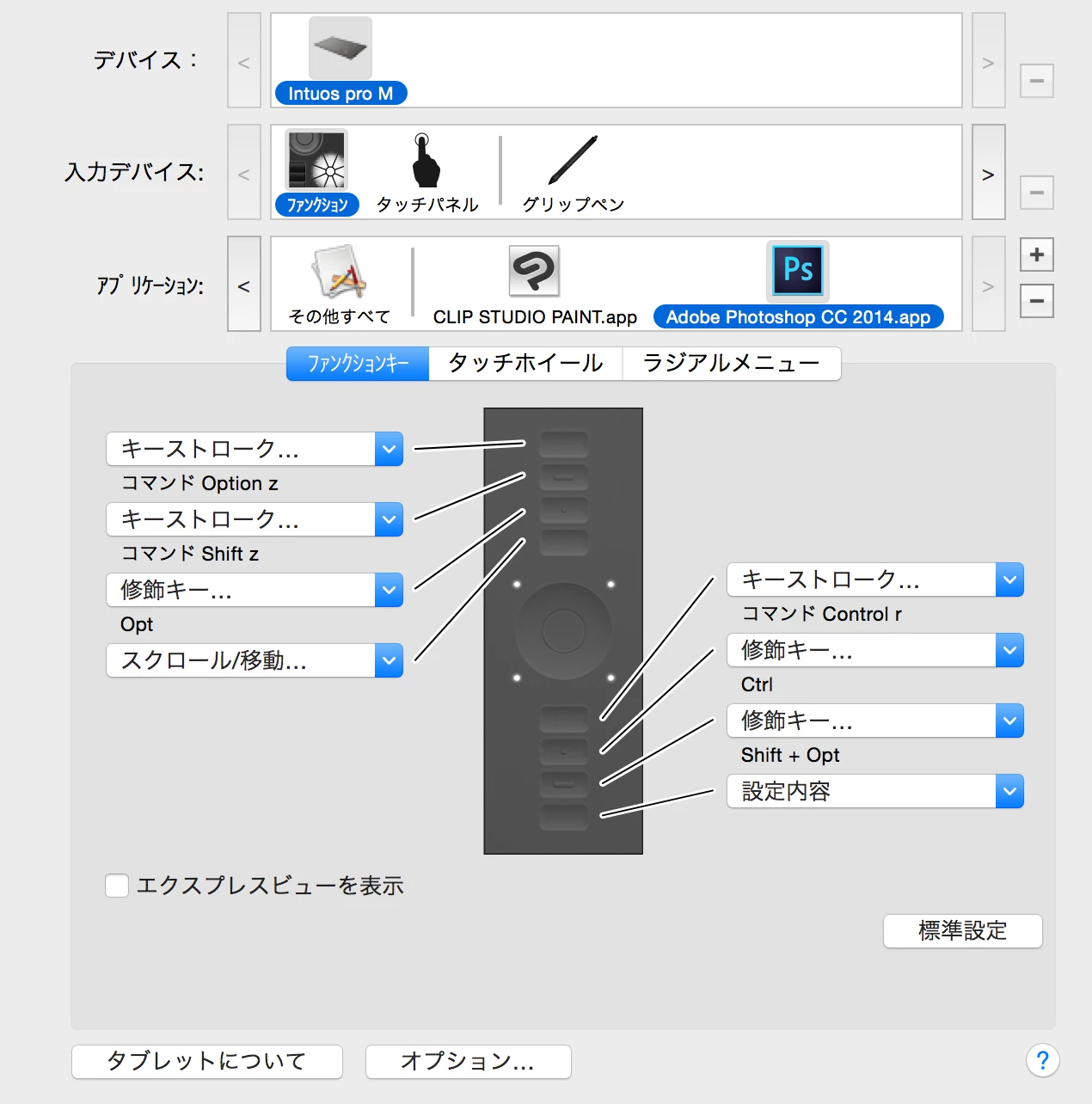 ペンタブのファンクションキーをプロパティで設定してもPhotoshop内で反映されない