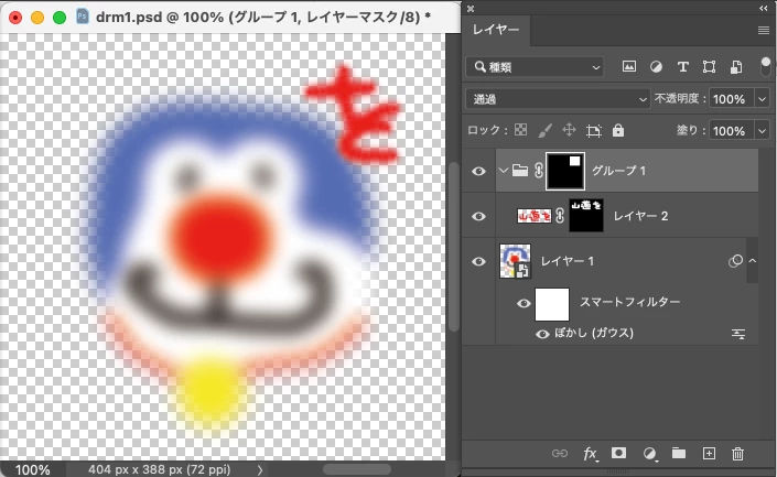 ・マスクをグループにして、グループにマスクを作成する