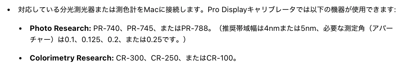 ②-2:MacのXDR系モニタは、「フル補正」選択画面のヘルプから調べられますが、対応センサーは数百万とちょっと気軽に購入できる価格ではありません。