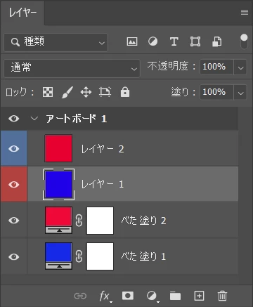 それぞれ『青の塗りつぶし』と『赤の塗りつぶし』であることがわかるように、