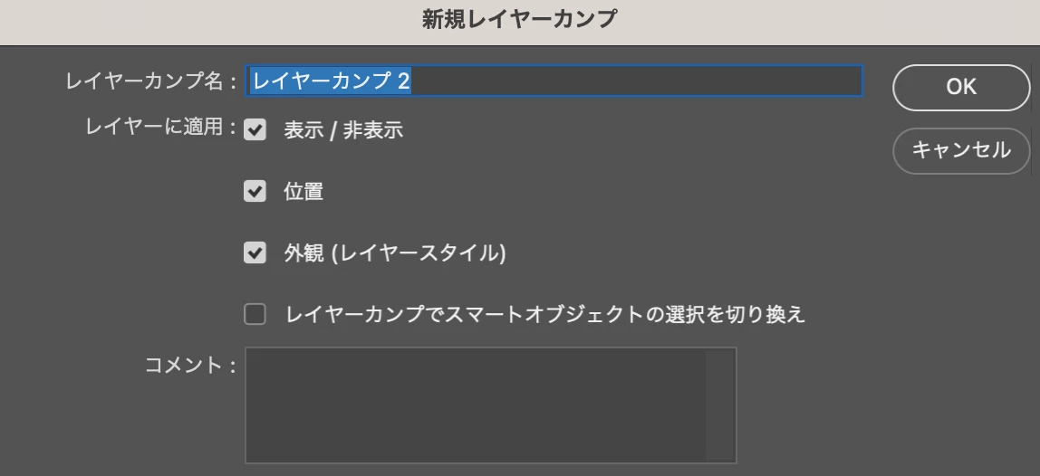 愛愛子24698780ue9gParticipantForum|Forum|2 years agoMay 15, 2023Question「レイヤーカンプでスマートオブジェクトの選択を切り替え」についてForum|Forum|2 years agoMay 15, 20230 replies534 viewsこんにちは!レイヤーカンプについて質問です。 レイヤーカンプの「レイヤーに適用」する項目の中で「レイヤーカンプでスマートオブジェクトの選択を切り替え」とはどのようなケースで使用するものでしょうか? こちらのチェックをオンにしたときとオフにしたときの違いについて知りたいです。 検索しても過去に投稿などが見つからなかったので有識者の皆様ご教授いただけますと幸いです。macOS