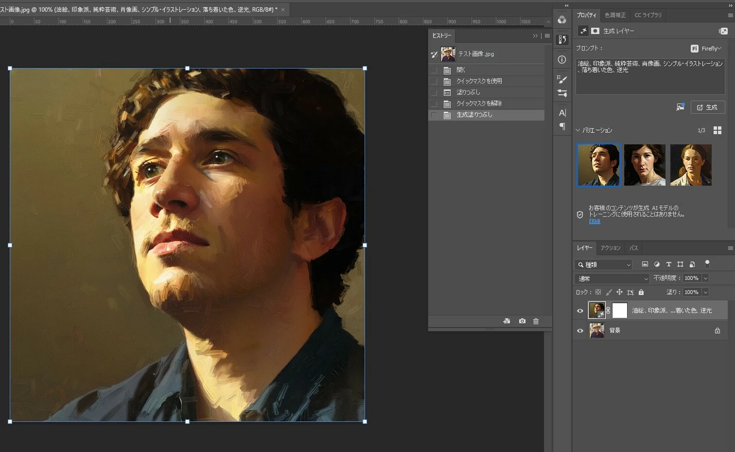 参考サイト:https://psgips.net/photoshop-tutorials/oil-painting-style-with-generative-fill/2