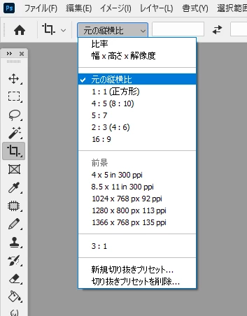 KkihayuniKnown ParticipantForum|Forum|2 years agoAugust 30, 2023Question切り抜きについてForum|Forum|2 years agoAugust 30, 20232 replies357 viewsPhotoshopのcs5と、サブスク版(2023)を使用しています。 CS5のpcは、外部(ネット)つないでいないPCです。 切り抜きボタンのプルダウンメニュ―で、サブスク版にはある「元のタテヨコ比」がcs5には無く、既定の数値(2Lやハガキ、A4など)のプルダウンメニューしかなく、「元のタテヨコ比」という項目がありません。 この「元のタテヨコ比」の項目はあとから導入されたものでしょうか?写真を既定の大きさにトリミングしたいわけではないので、この項目がとても必要なのですが、古いcs5にはあるのか無いのか、ご存じの方教えてください。 Windows