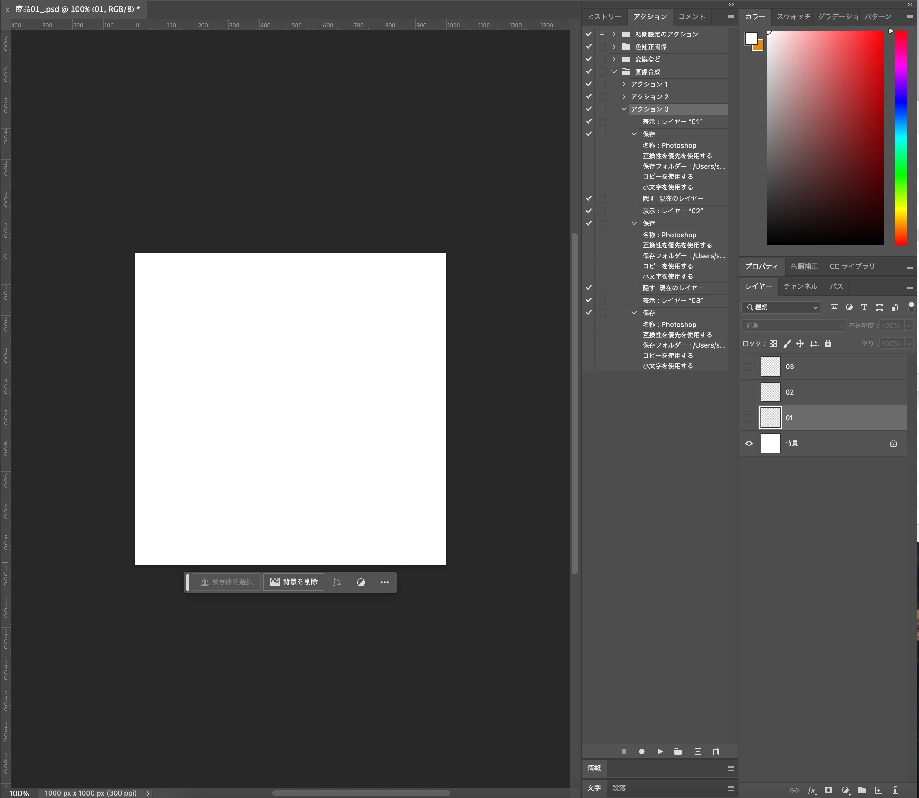 元のデータが商品01_、レイヤー3を表示させる:データ名「商品01_03」保存