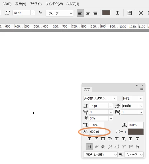 オプションバーの「文字パネルと段落パネルの切り替え」にて文字パネルを表示させ、