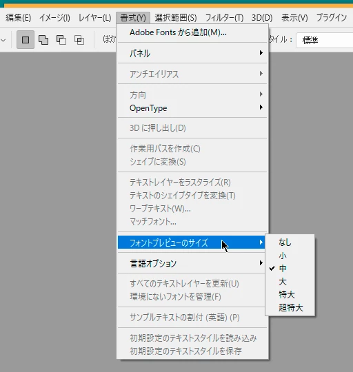文字パネルのフォント候補の大きさがいつの間にか小さくなっていて、環境設定などを見直しても大きくすることができません…
