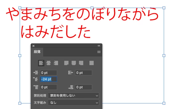 今回は段落パネルの「一行目 左/上 インデント」だったでしょうか?