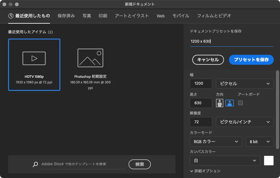 上にある画像は新規ドキュメント内にデフォルトでAdobeが用意している(Web内にある)「HDTV 1080p」というプリセットです。