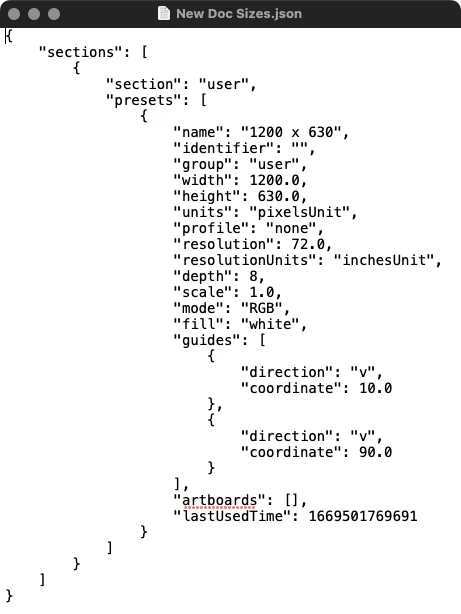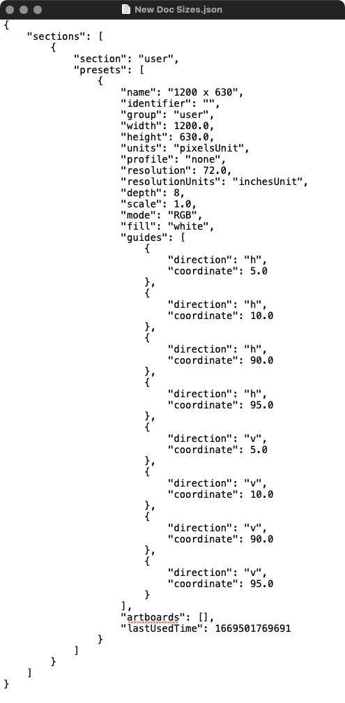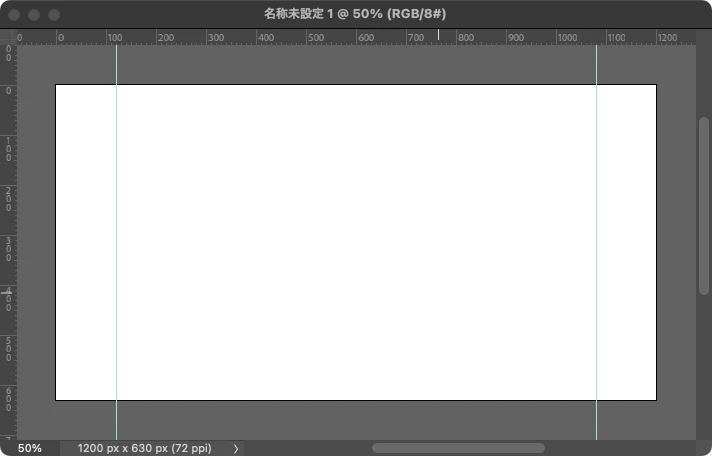 今回は下のように 1200 x 630 pxの解像度内にトンボとしてガイドを常設したく、[ファイル]⇒「新規」で新規ドキュメントの作成する際に一緒にこのガイドも読み込めるようにしたいのですが何か方法はありますでしょうか。