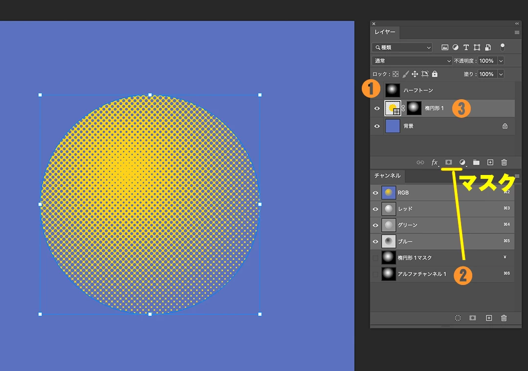 2 ハーフトーンを適用したレイヤーを新規チャンネルにコピペ