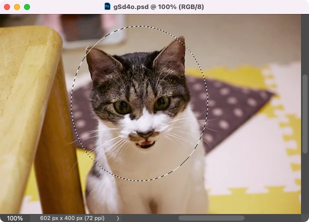 楕円形選択ツールで選択範囲を作成、