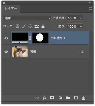 新規調整レイヤー「べた塗り」、カラーピッカーが出るので黒を指定、