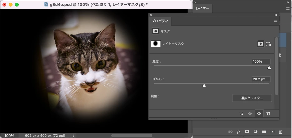 プロパティパネルでレイヤーマスクの「ぼかし」を適宜指定、