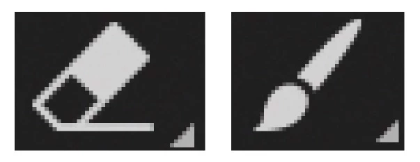 消しゴムのツールを使って消そうとして、サイドバーの消しゴムのアイコンを押すと、ブラシが起動する。