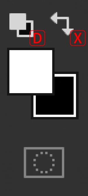 では②ですね。ツールバー(×サイドバー)の下の方にある、描画色と背景色を確認してください。