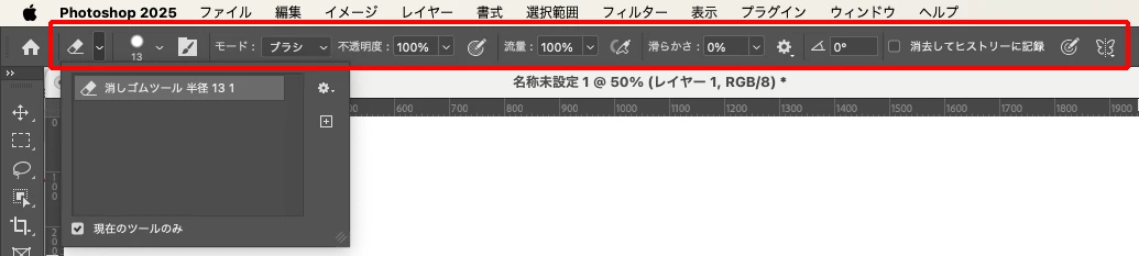 どうやれば、消しゴムツールが使えるのでしょうか。