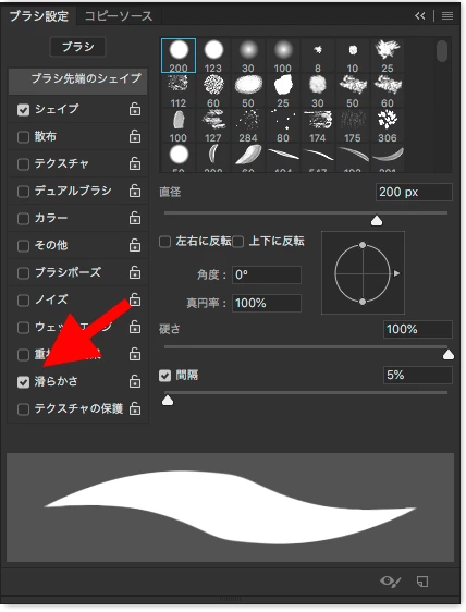 ブラシ等についている機能の、「滑らかさ」が使用できない状態です。