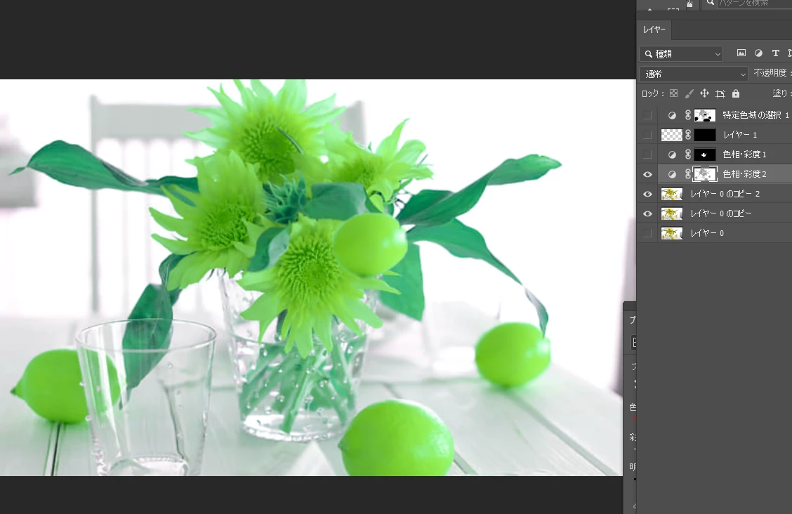 そのため、調整レイヤーをつくって、その調整レイヤー上で色の置き換えをしていきたいと考えたのです。しかし調整レイヤーに「色の置き換え」という項目はありませんでした。