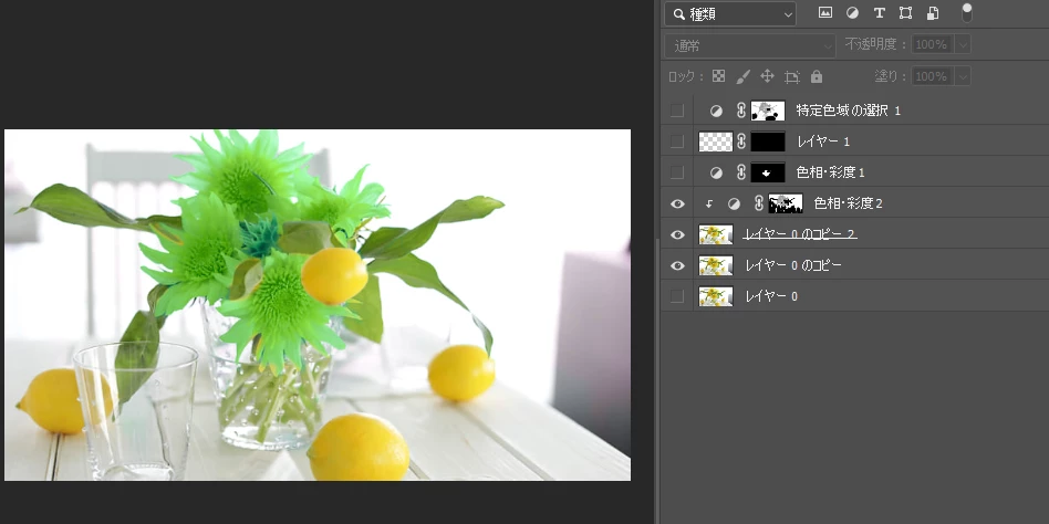 「色の置き換え機能」を使ってしまいますとレモンまで青くなってしまいます。