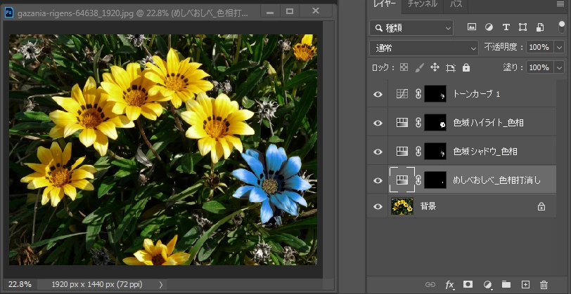 花のみ選択範囲を指定した状態でも、画面全体に適用されてしまいます。