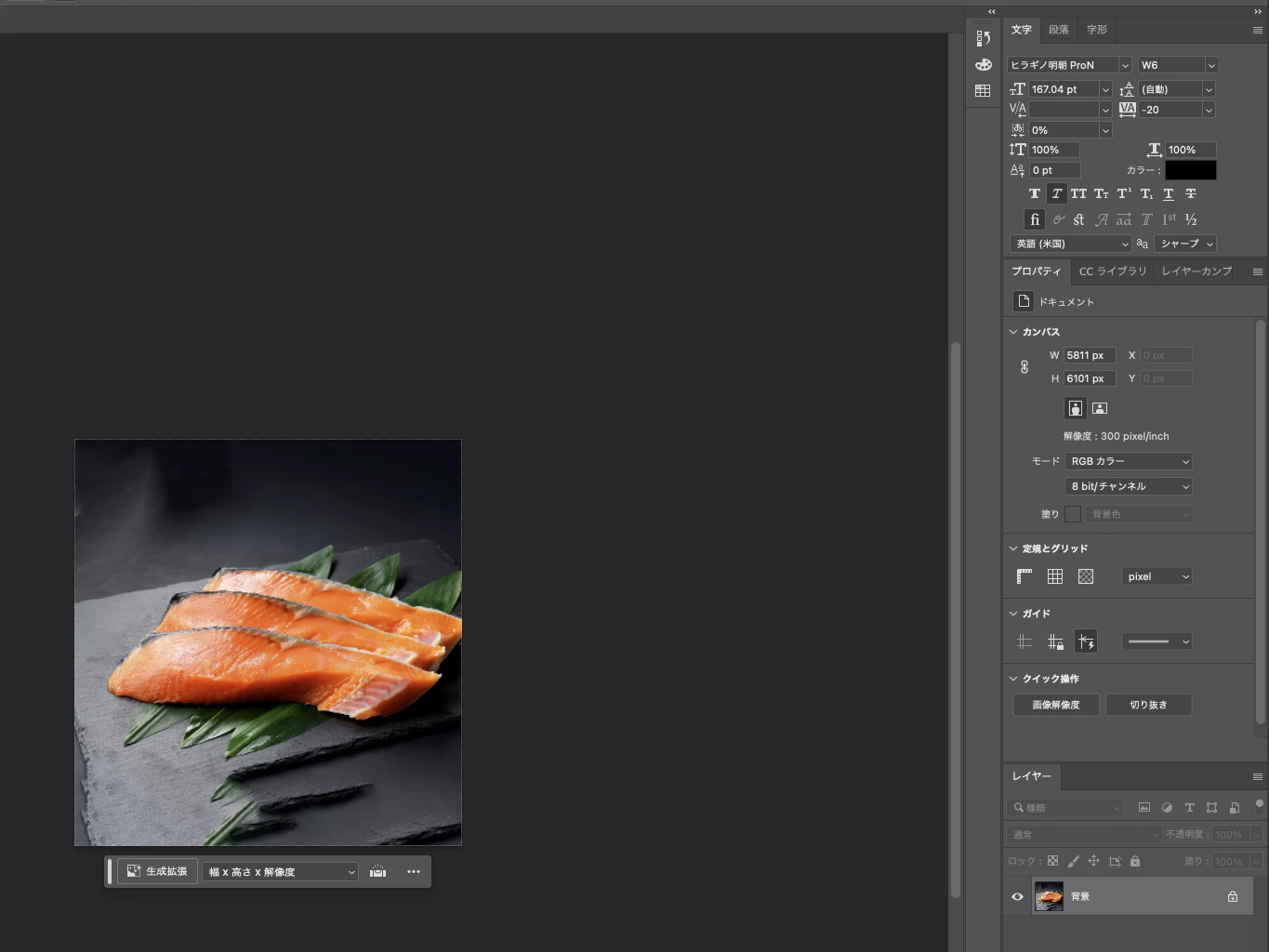 Photoshopにて生成拡張を行い、画像の背景を引き伸ばそうとしています。