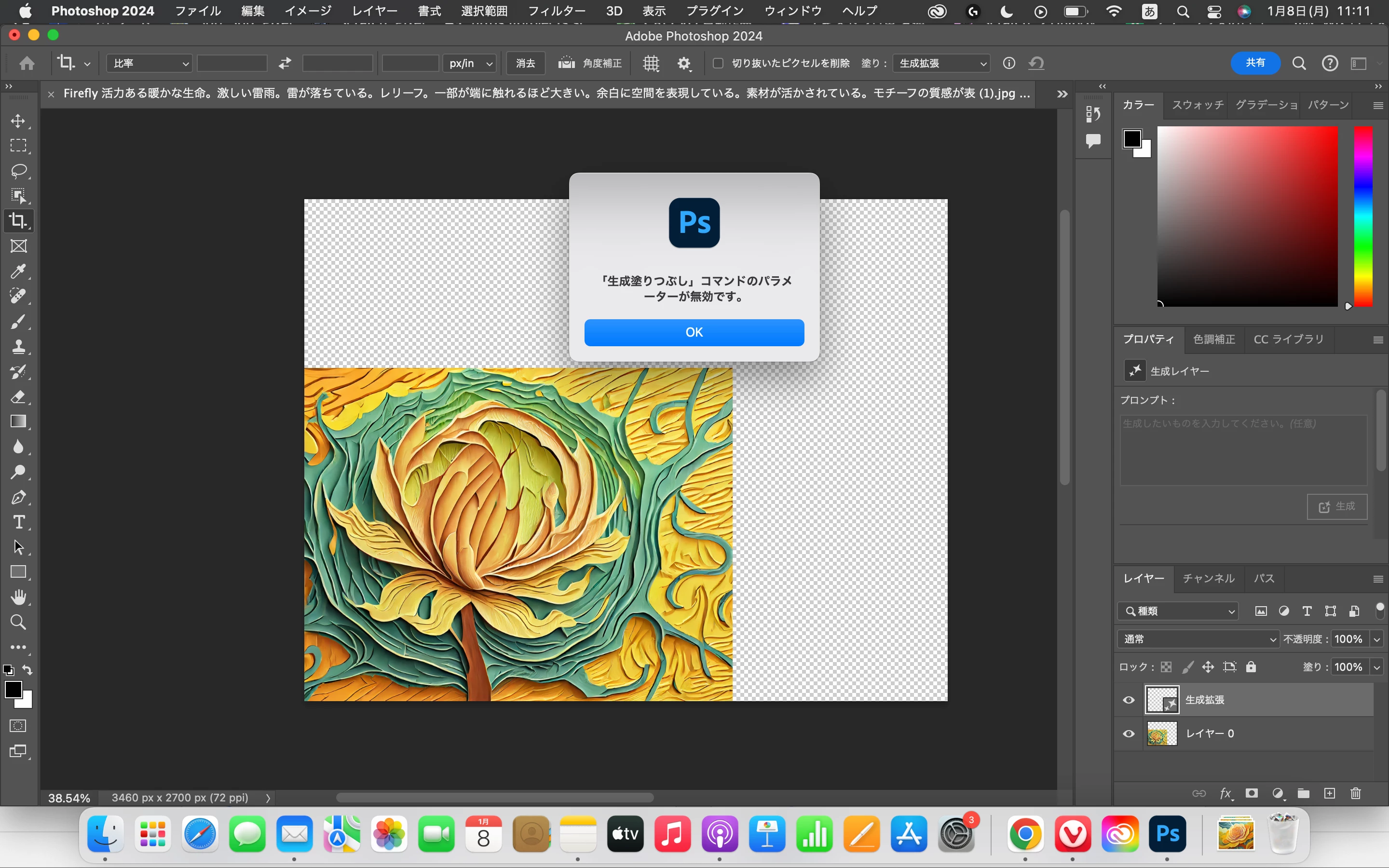 「生成塗りつぶし」コマンドのパラメーターが無効です