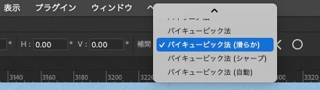 ですので、プロパティパネルで指定したい場合でも、先に自由変形モードに入って補間方法がどうなっているか確認しておくとよいかと思います。一度設定すればそのままになります。