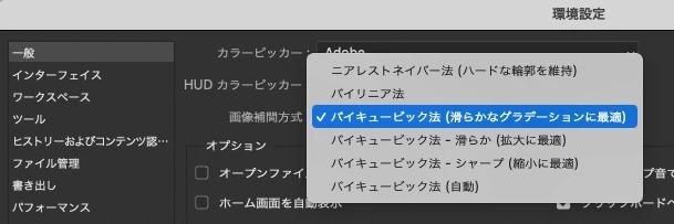 ②のスマートオブジェクトである場合、上記ではなく環境設定>一般の画像補間形式で指定したアルゴリズムが使われます。スマートオブジェクトの場合には画像解像度を含む全ての変形操作でここの設定が使われます。