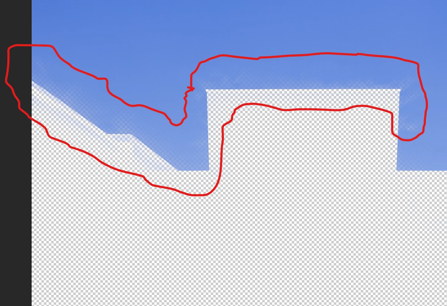 この写真は空を選択で選択した範囲を、コピーしたレイヤーを作った後の写真です。