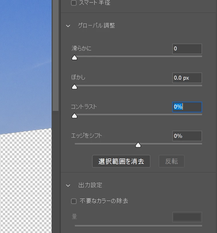 選択範囲の内側も外側も自動でボカシのようなものが入ってしまいます。これが凄く悪影響を及ぼすのですが、解決策はありませんか?