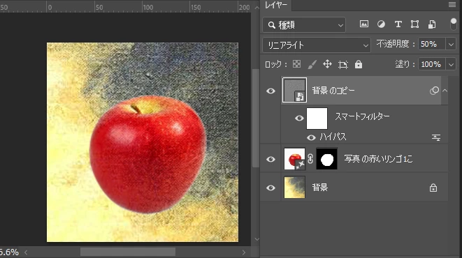 ハイパスの値を変更することで、質感の粗さも変えることが可能です。