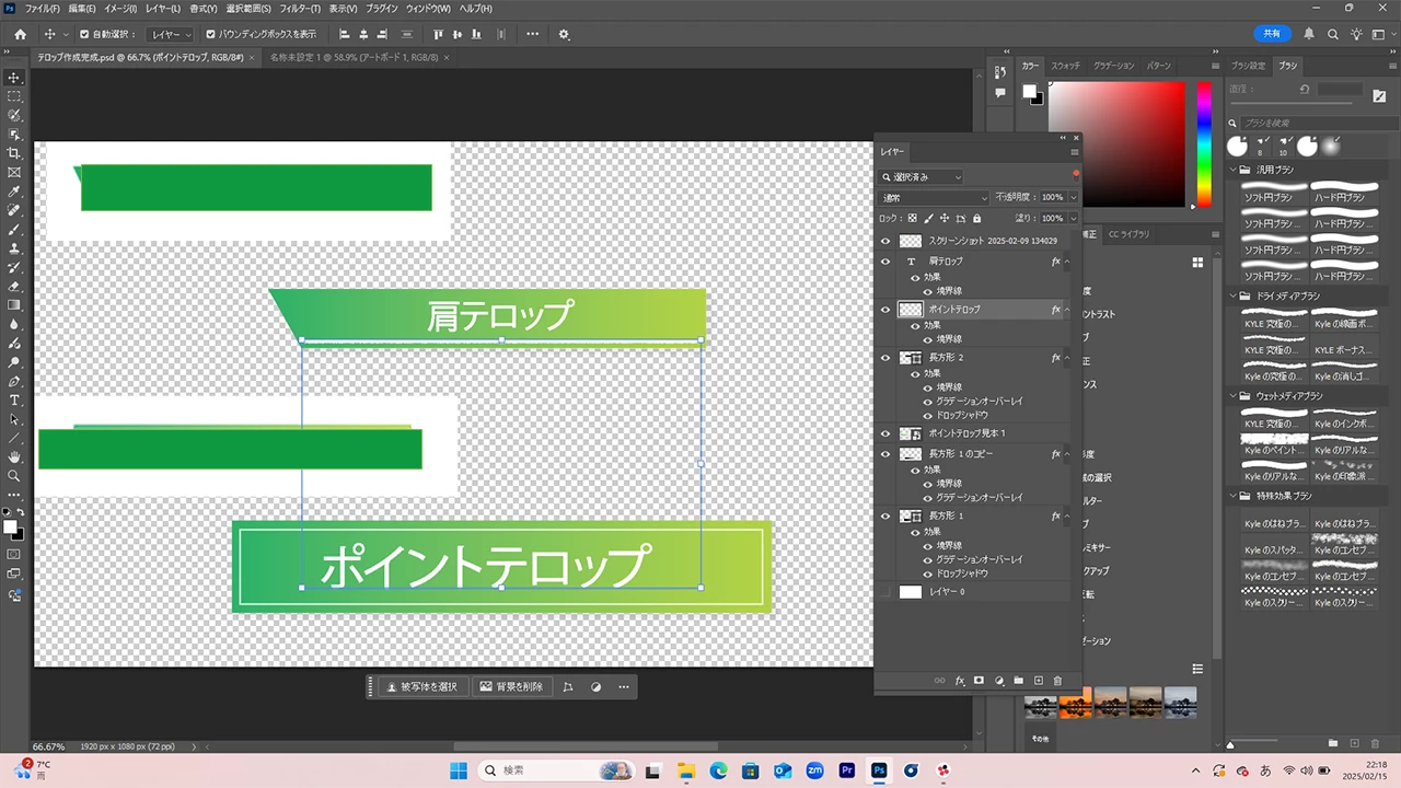 添付写真のようにブラシツールで白の線を引き、線の位置を微調整しようと動かすと一緒にポイントテロップという文字まで一緒に動いてしまいます。