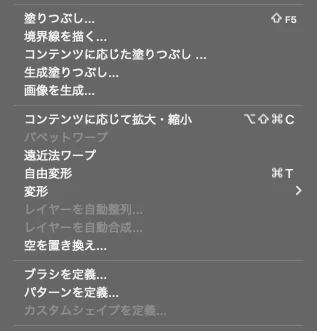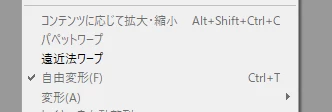 編集→自由変形 この文字の横の✓マークを消したいです。