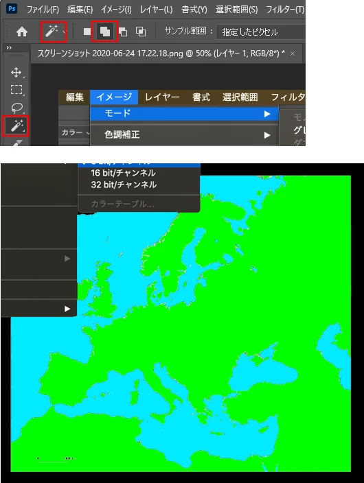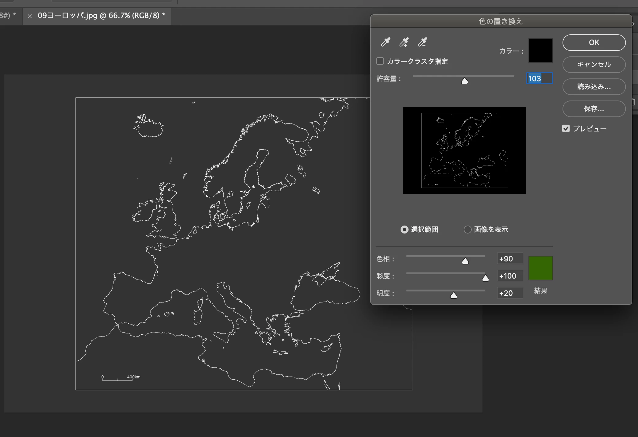 この元ファイルは黒地白線の地図なのですが、黒地を他の色に変えたいと思い、ネットで調べたところ、