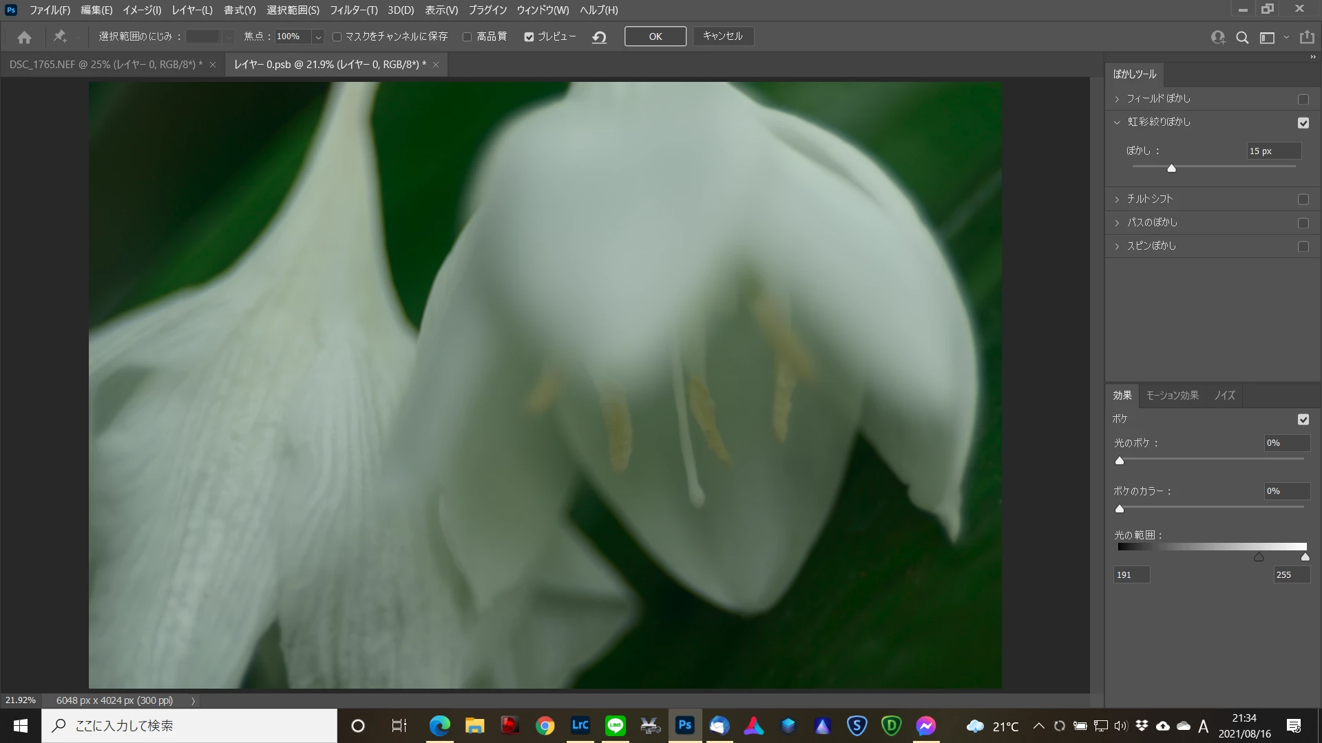 虹彩絞りぼかしを使おうとしても、ピンのアイコンが一つ出るだけで、円がでません。