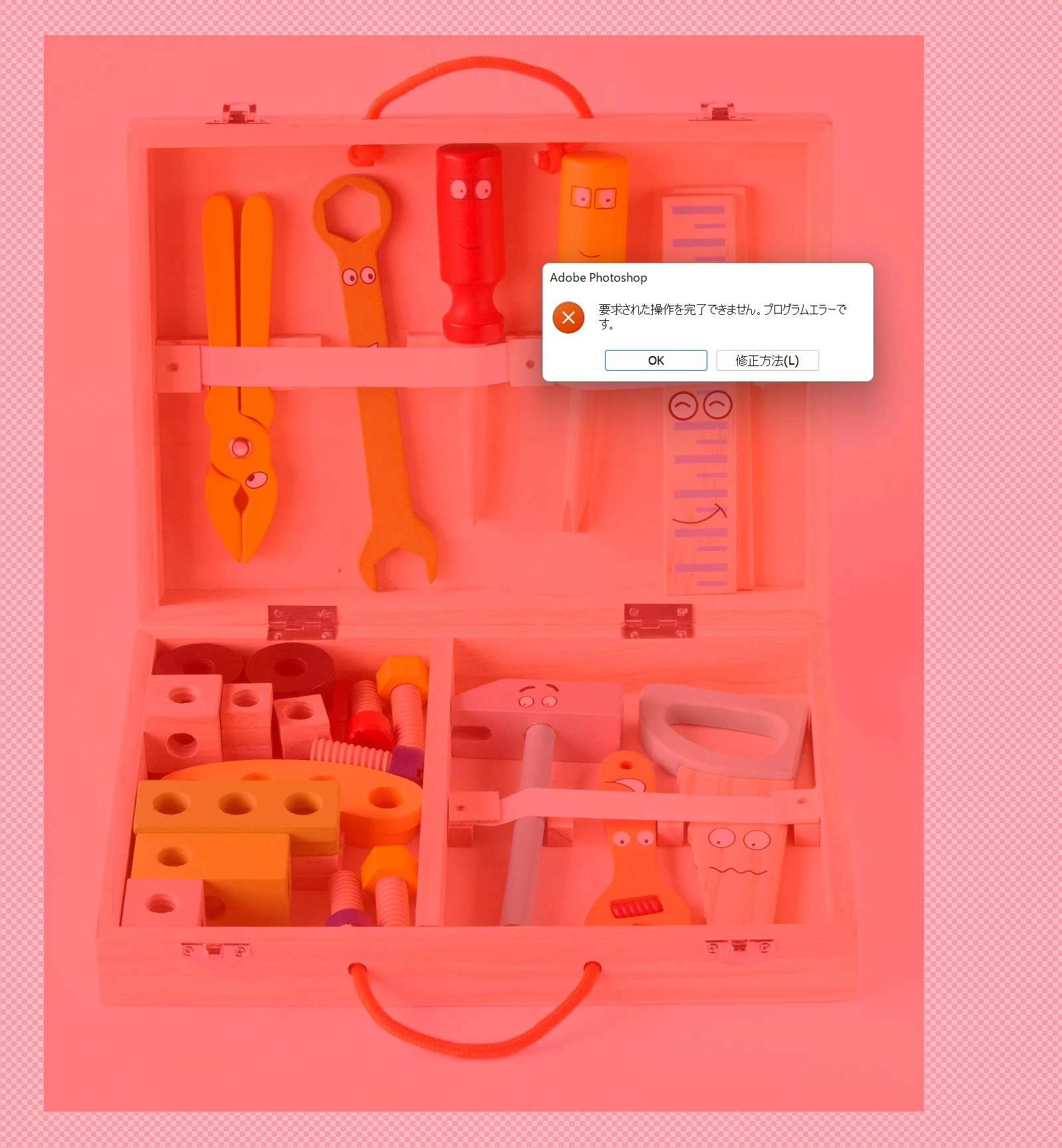 Windows10(21H2)/ Photoshop23.3.2 ですが,一眼レフで撮影した画像データ(JPEG)をいじってもエラーは出ませんでした。