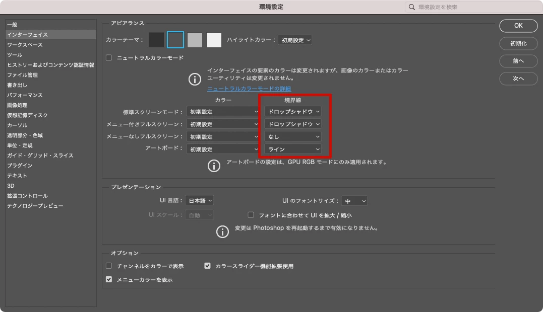 いつの日からか最近添付のような、アートボード全体を取り囲む黒い線が表示されるようになりました。
