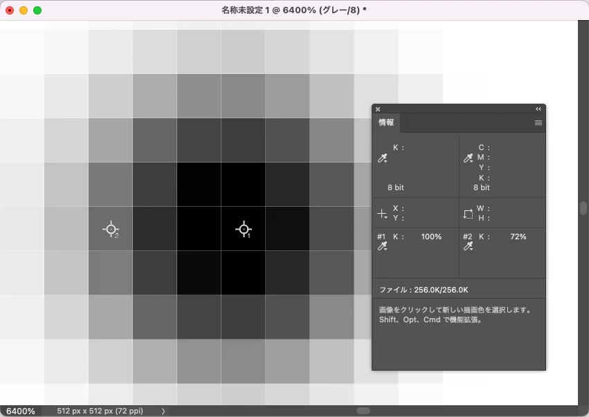 グレースケールに変換した際の、オブジェクト端っこの部分がグラデーションになっていると思うのですが、どうやらそこの範囲?が微妙に変わる(広くなる)っぽいのです。