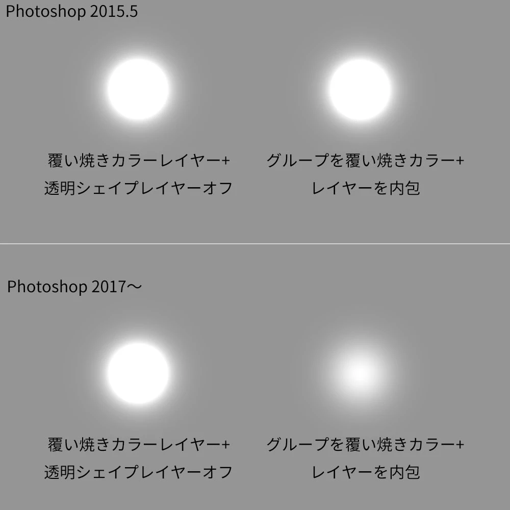 対策として、覆い焼きカラー(リニア含む)のフォルダに透明シェイプレイヤーのチェックを外して同効果を得ていたのですが、数バージョン前からはファイルを保存して再度開くと、