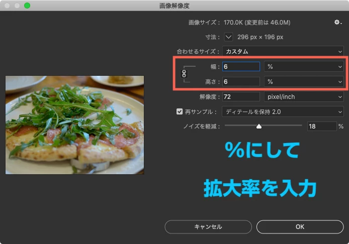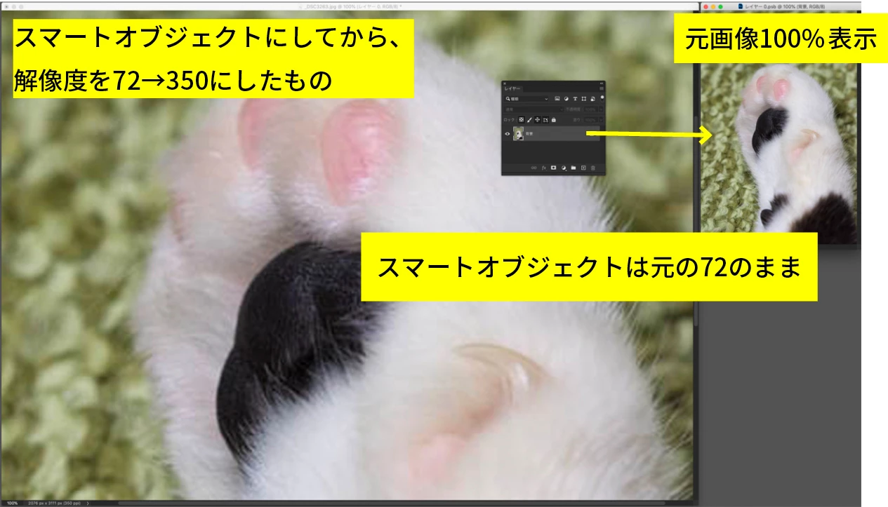 photoshopで画像の解像度を変更するとき、画像の解像度を再サンプルにチェックを入れて変更して、そのあとスマートオブジェクトにして小さくサイズを変更する分には問題ないでしょうか?