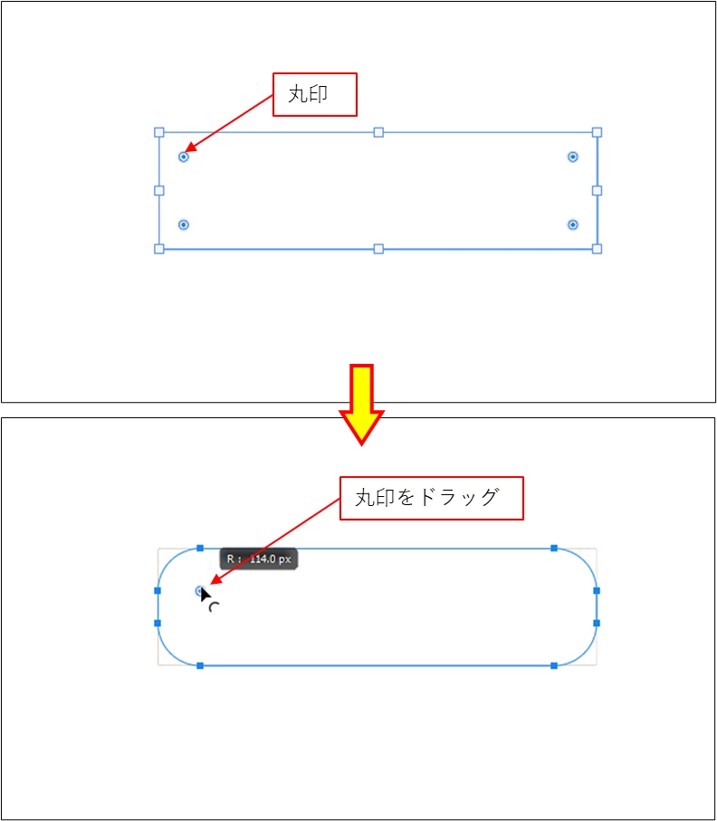 長方形シェイプの角を変形させる方法