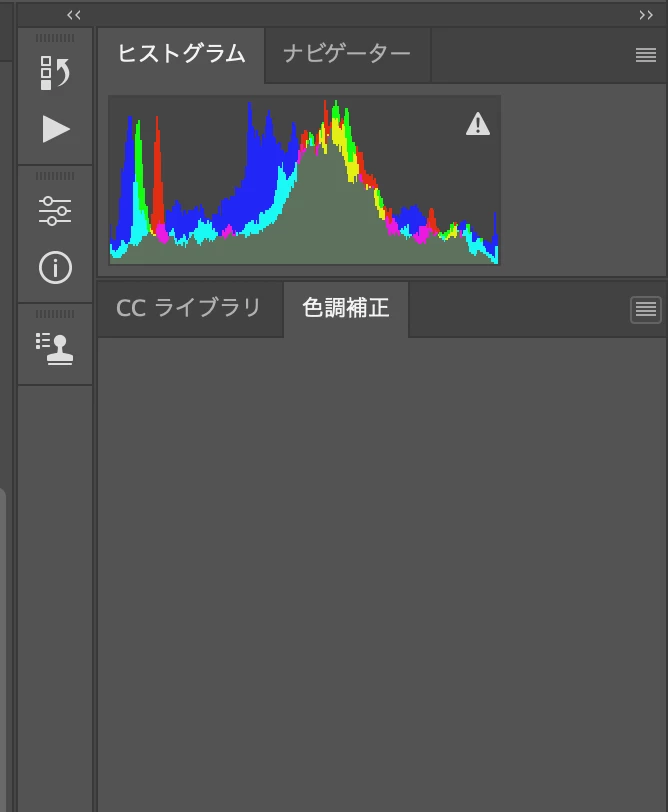 写真の露光量を変更したいのですが、写真のように色調補正パネルに何も表示されません。