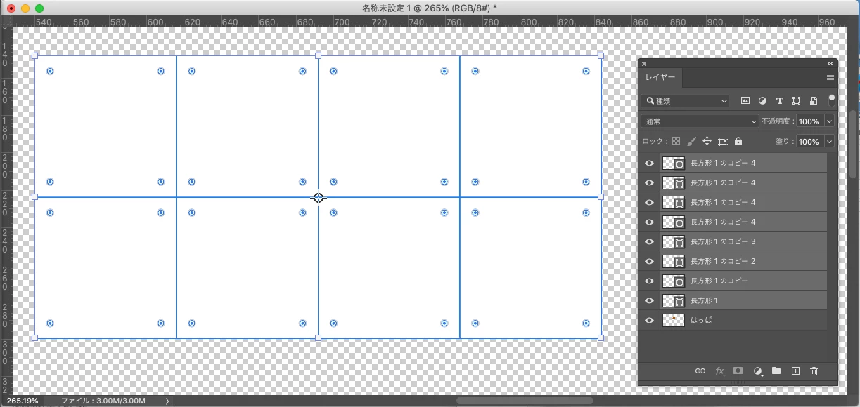 正方形シェイプレイヤーを作り、複製して整列させました。