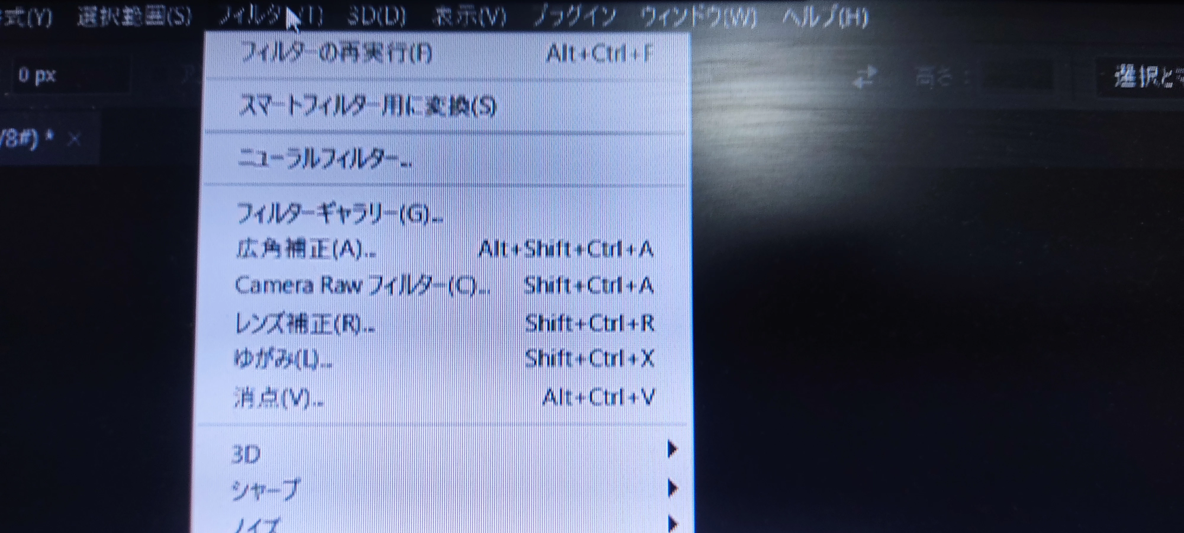 ノートパソコンで作業してたらアップデート後にフィルターの項目から