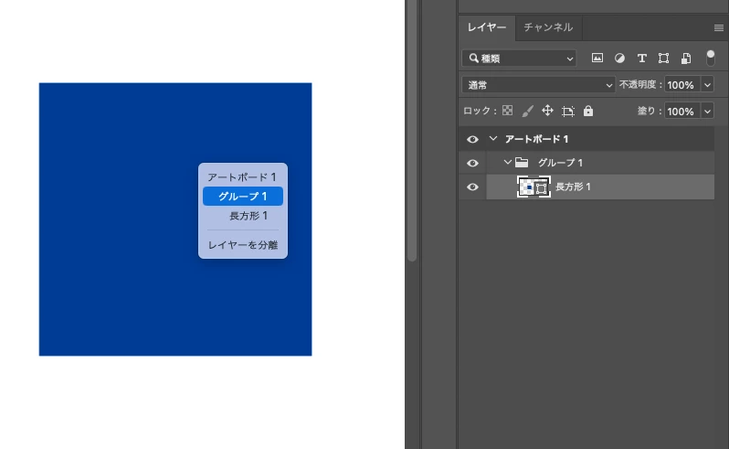 オブジェクト(参考画像:青い四角形「長方形1」)が直接選択されていたのですが、