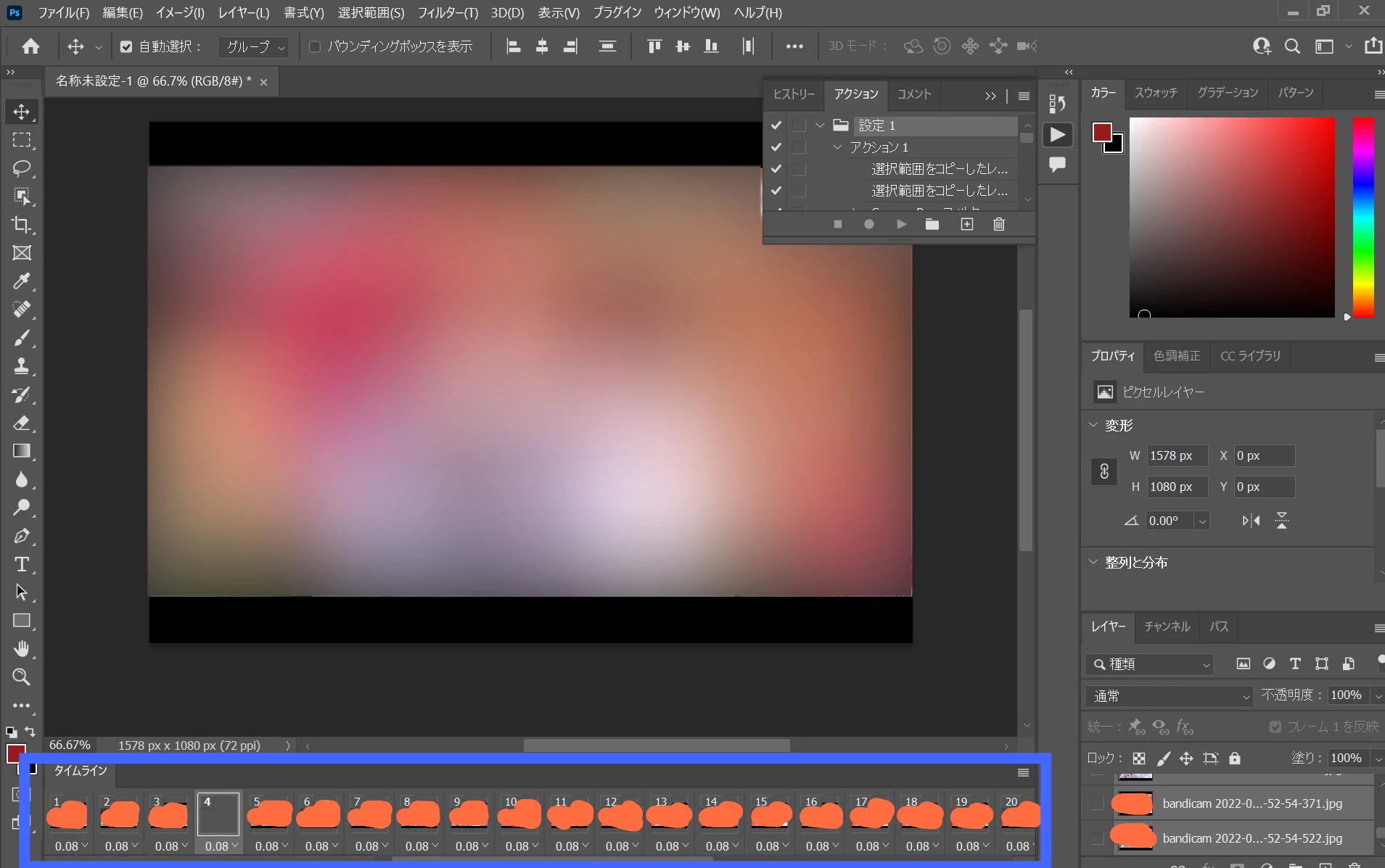 手元の環境(macOS 10.14.6, Photoshop 22.5.4)で同じサイズとフレーム数で作ってみたのですが再現できませんでした。