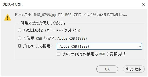 カラーマネジメントなしで開いた場合はどうでしょうか。