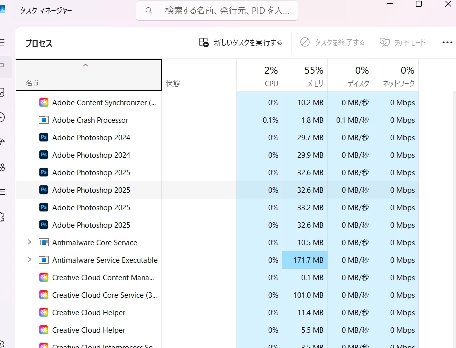 タスクマネージャーを見ても分からずです。